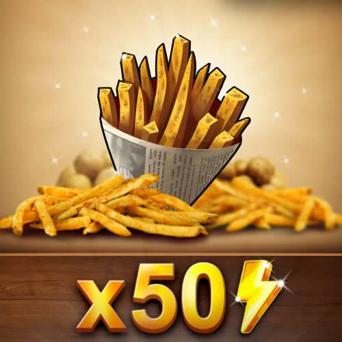 Da Sie auf jedes Spiel aufmerksam sein müssen und gut ernährt werden müssen, geben wir Ihnen ein Päckchen Pommes, das Sie gegen Energie austauschen können, wenn 50 Energiepunkte für Sie völlig frei sind.